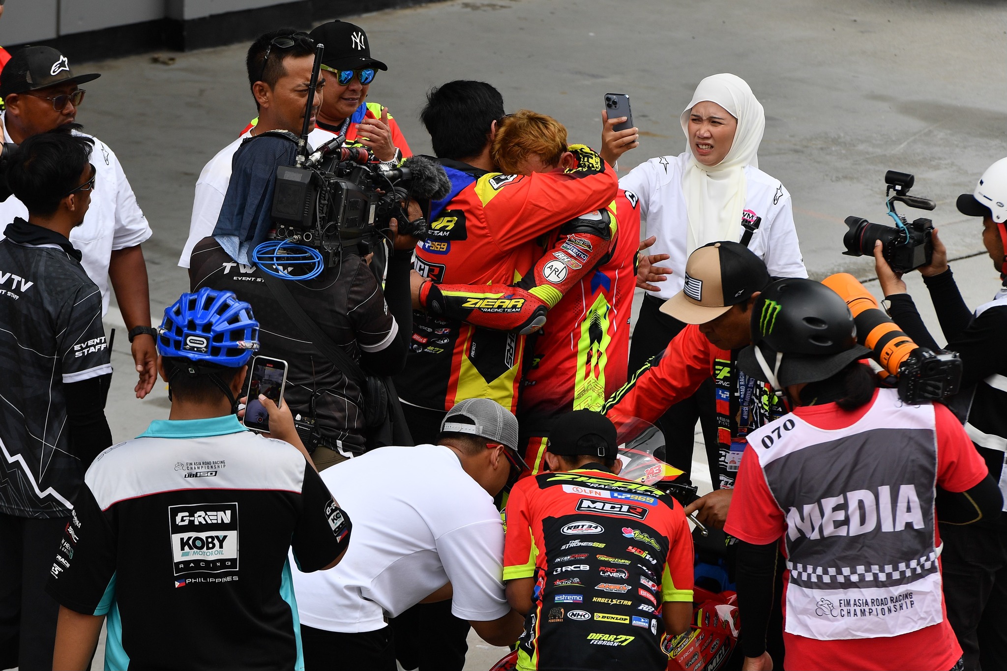 “Untuk balapan tadi, Alfi sedikit miss di last lap. Alhamdulillah Alfi bisa mengunci gelar di Race 2 ini,” ujar Alfi dari parc ferme di sirkuit Sepang.