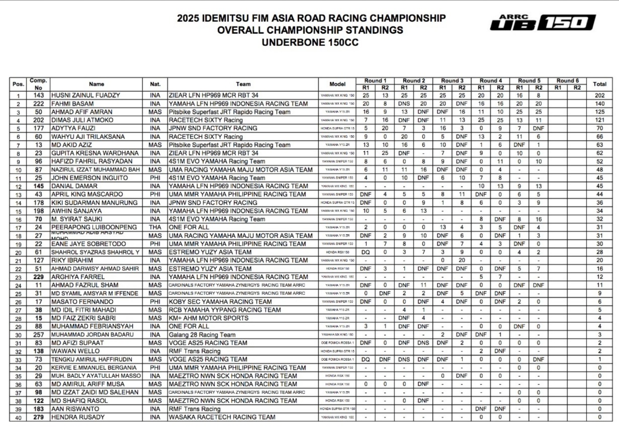 Hasil Klasemen Sementara ARRC Malaysia 2025 :