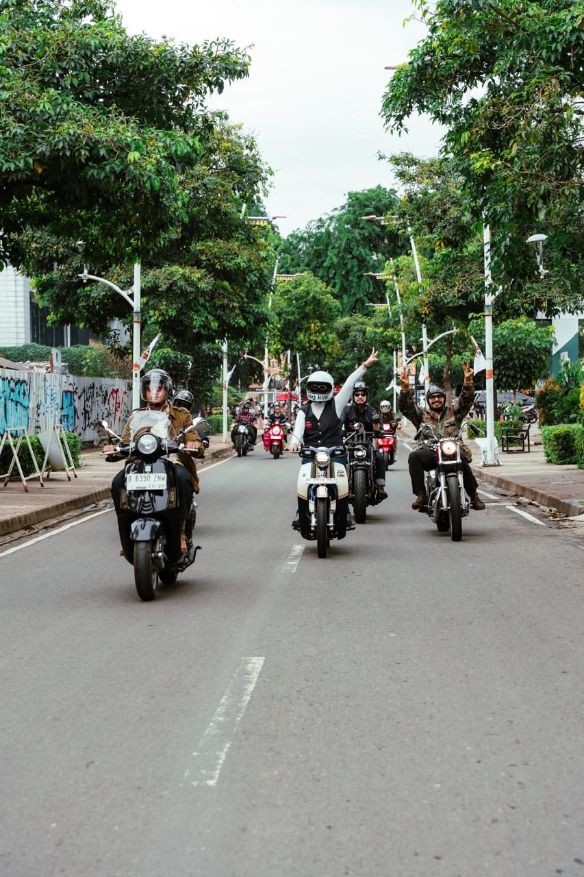 Dengan gaya busana dan ditemani motor dengan berbagai genre, membuat rombongan konvoi tampil unik, ikonik, dan mencuri perhatian sepanjang perjalanan.