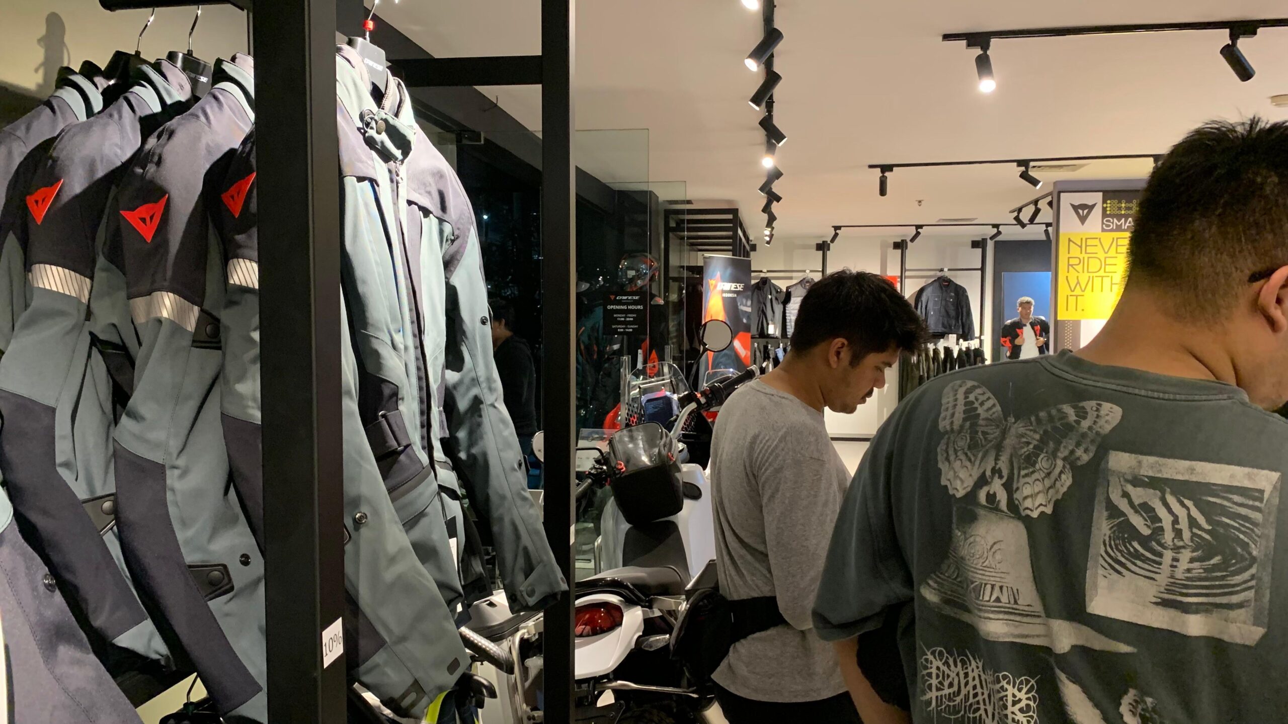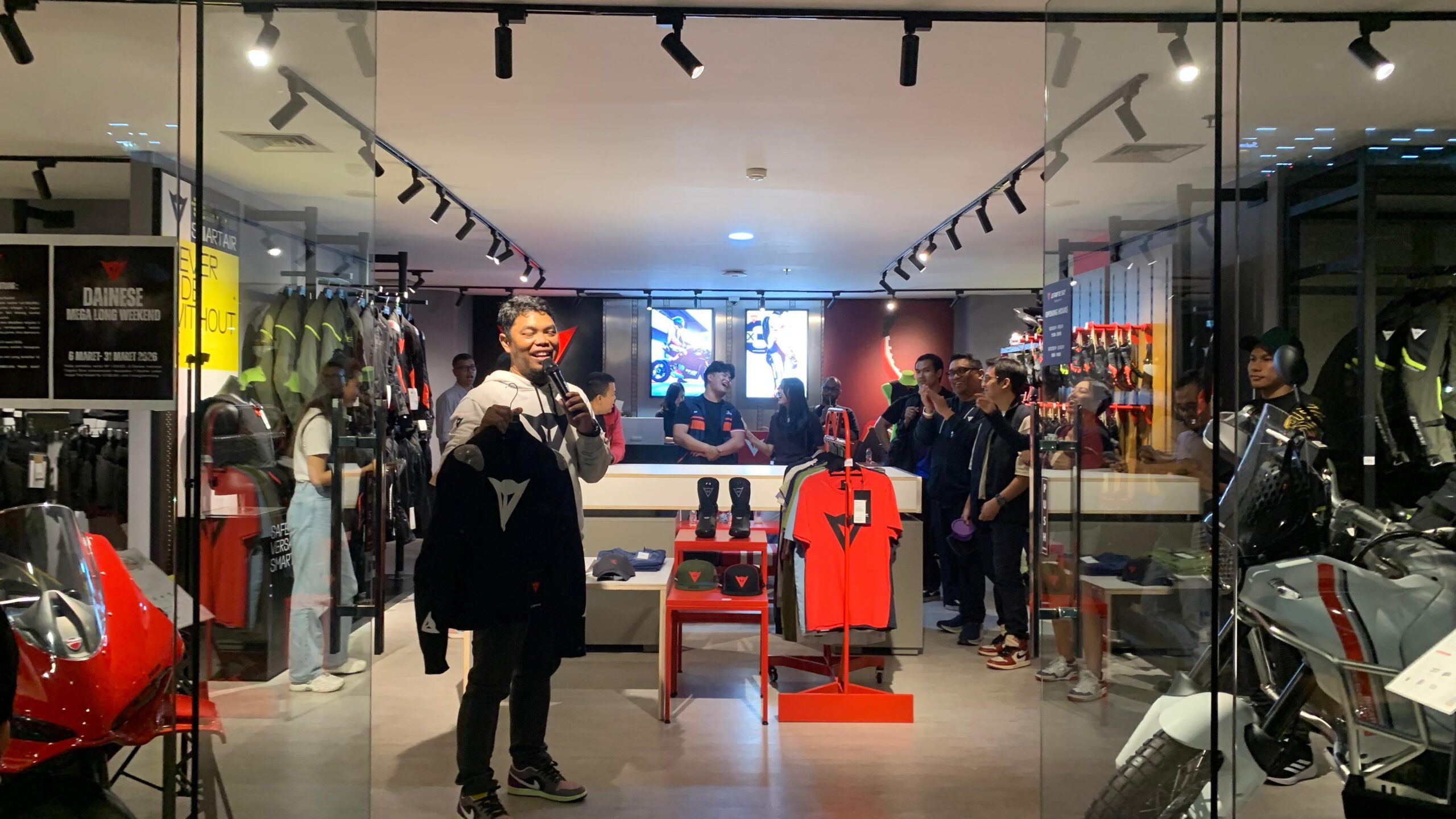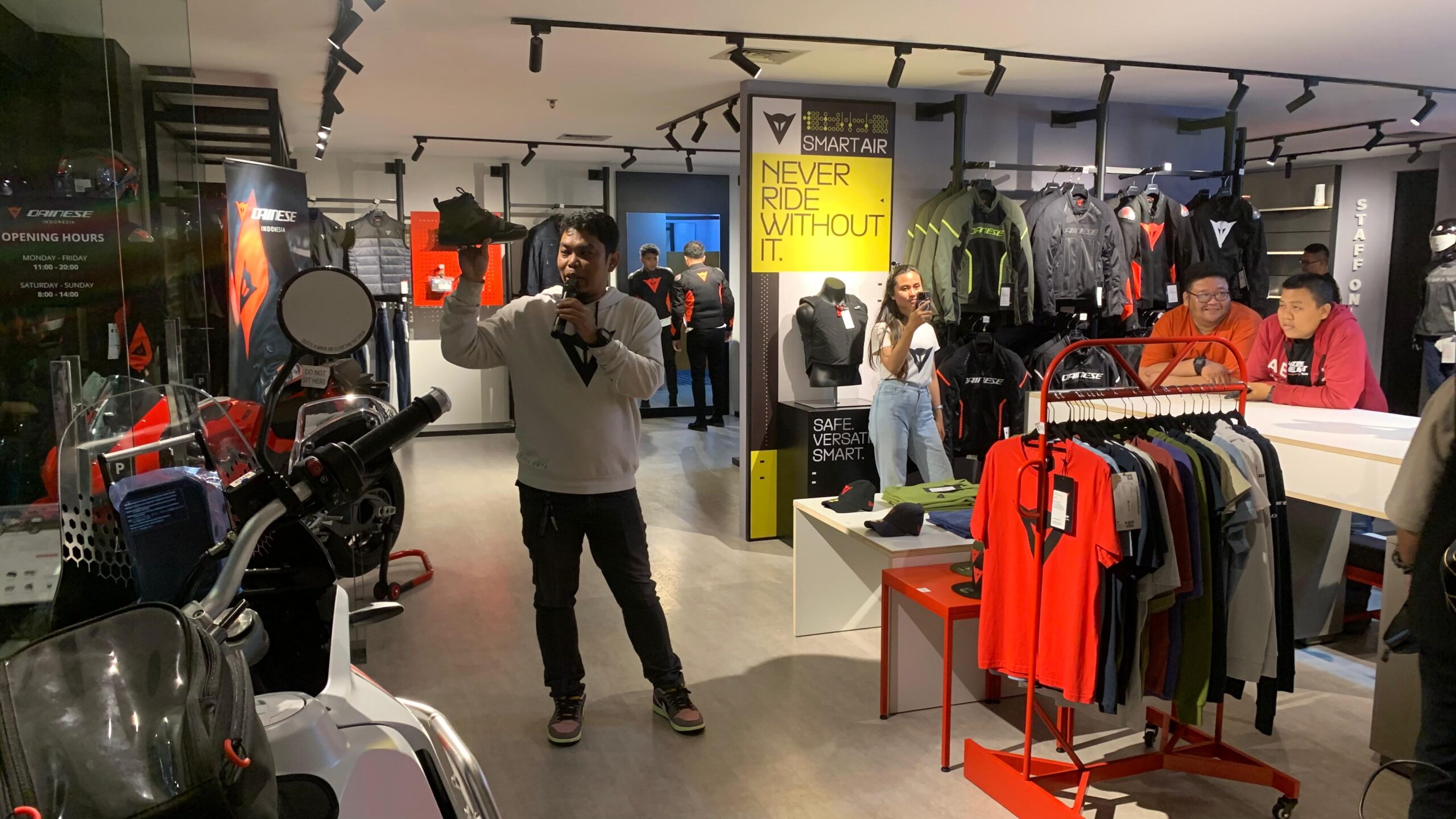 Dengan acara ini, bagi mereka pecinta apparel Dainese pun merasakan kemudahan untuk menggapai pakaian berkendara mereka. Seperti diungkap Goldie Samyoga atau akrab disapa Jodie.