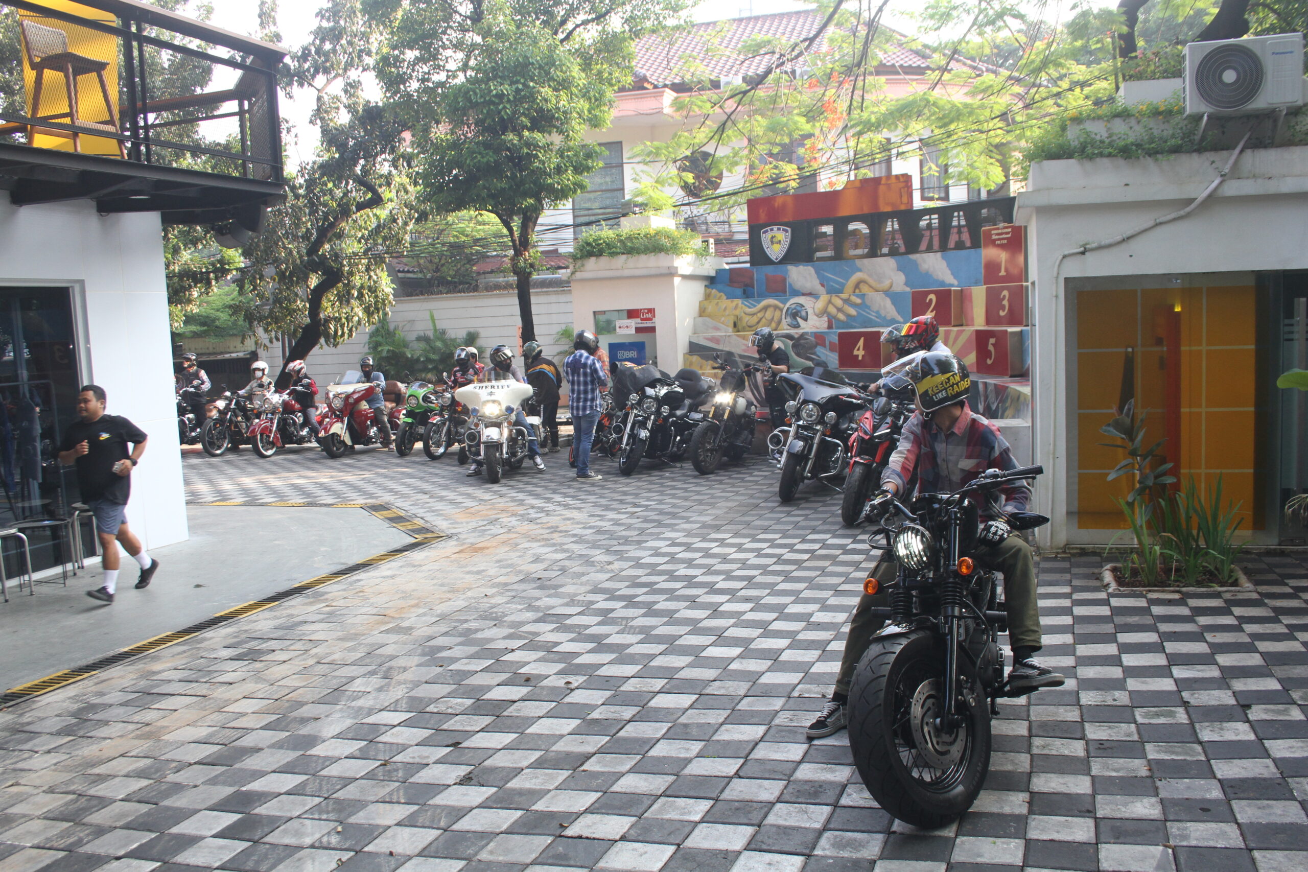 Sebelum menuju SatPas SIM Polda Metro Jaya di Daan Mogot, mereka berkumpul di Black Stone Garage, Kebayoran Baru, Jakarta Selatan.