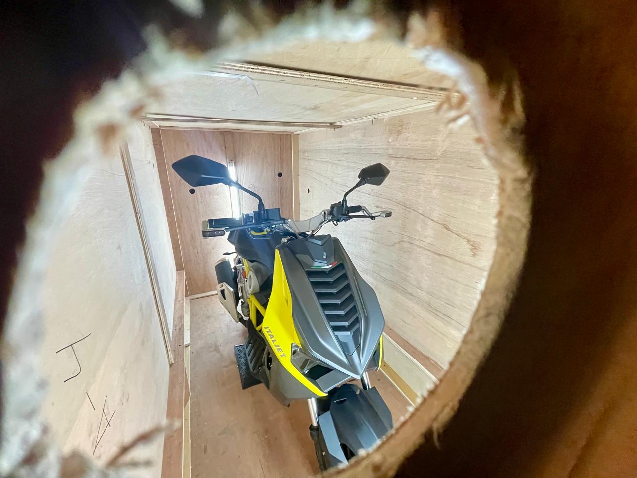 Sedangkan untuk varian Italjet R200, baru sekadar dikasih intip saja. Itu karena pada acara ini, motor skutik tersebut masih tetap berada dalam boks kayu yang diberi beberapa lubang untuk bisa diintip keberadaannya di dalam.