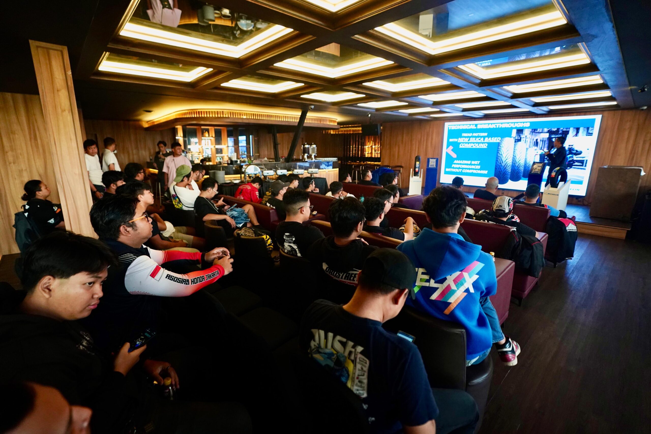 Bikers terus menyimak penjelasan dari Fachrul Rozi selaku Product Marketing Manager Michelin Indonesia yang menjelaskan tentang spesifikasi Power 6.