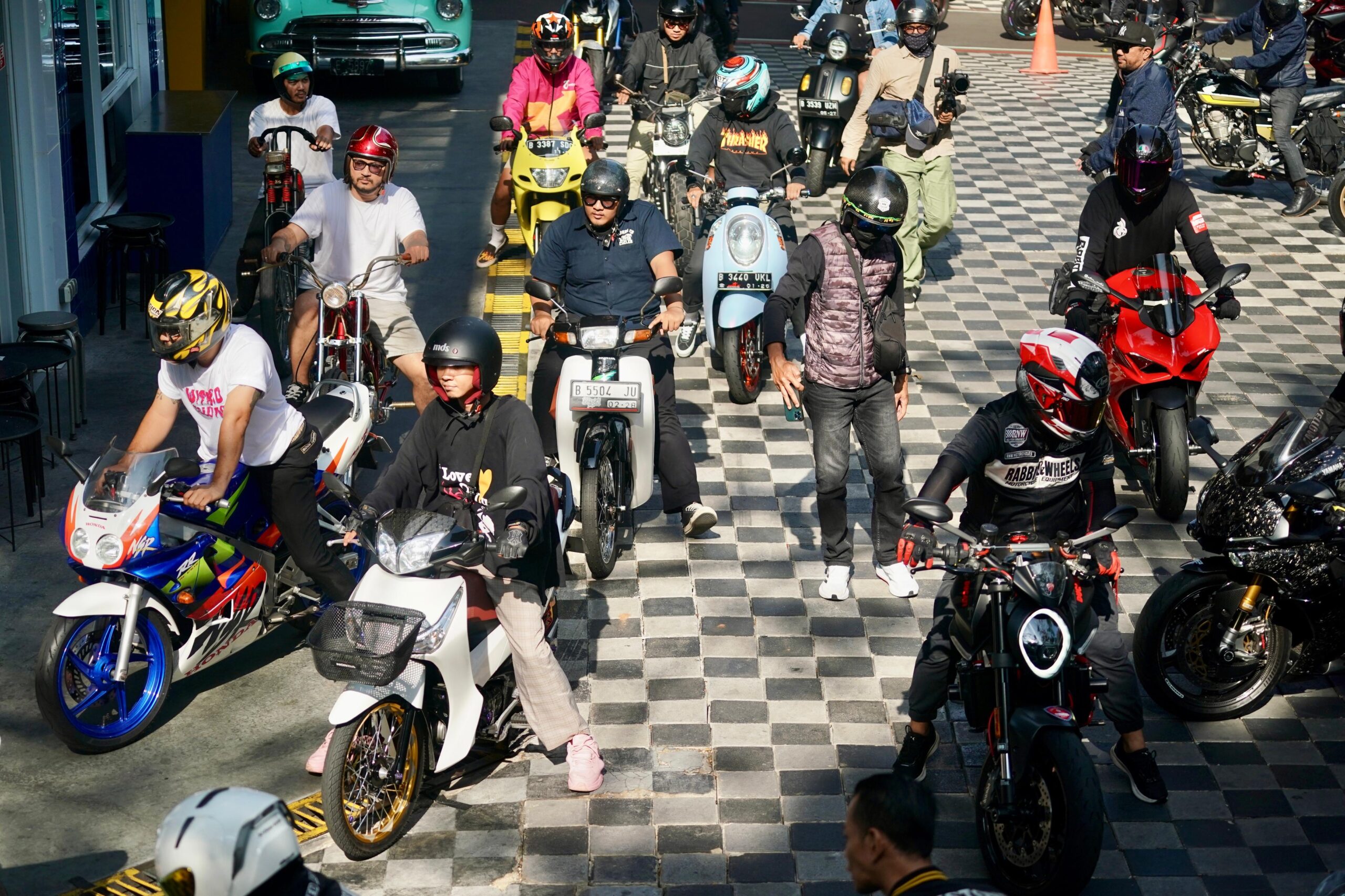 Seolah tak ada jarak antar sesama bikers, mulai dari penyemplak motor matic, kustom hingga motor besar bergenre sport turing juga superbike menikmati kebersamaan riding.