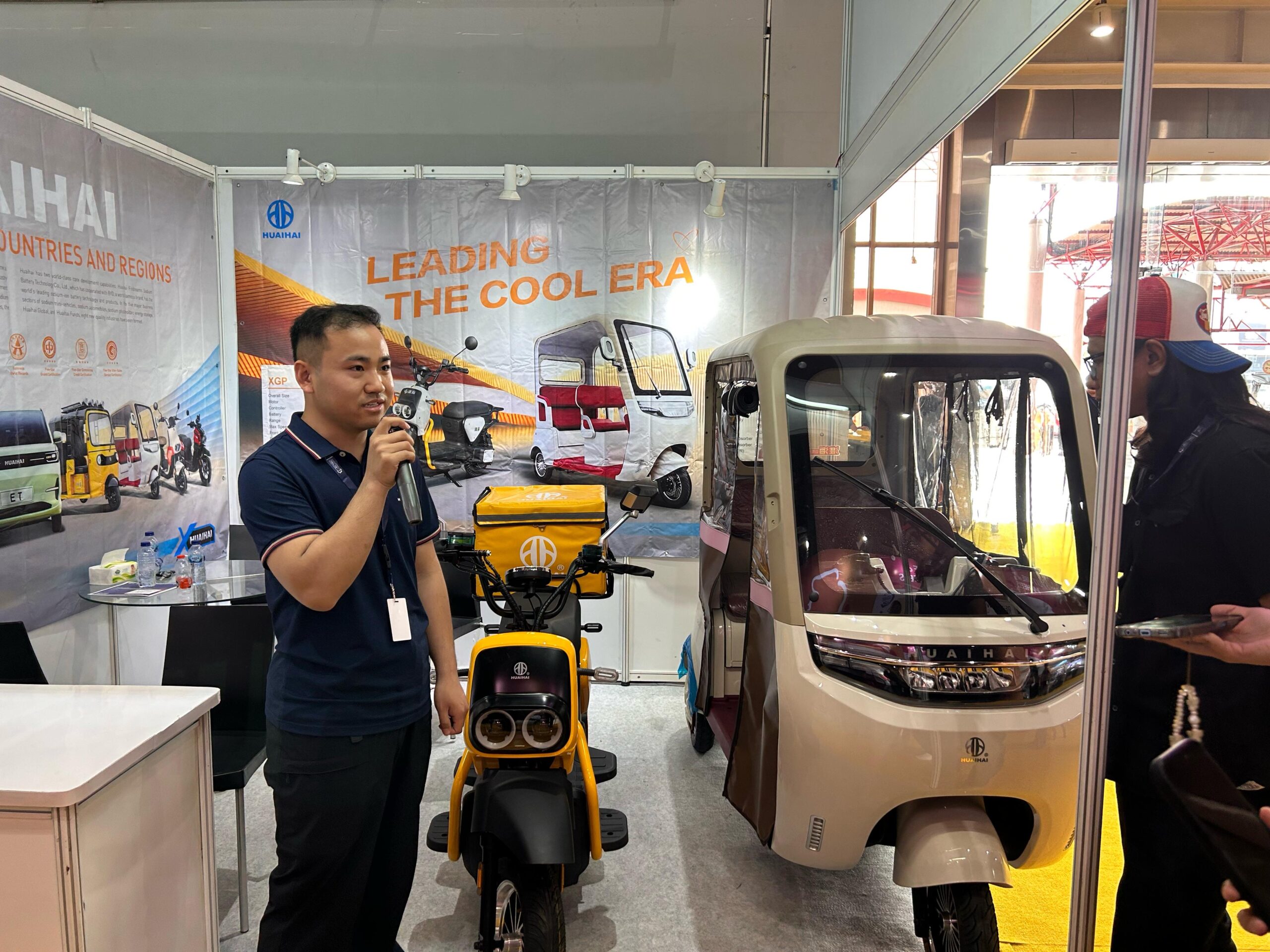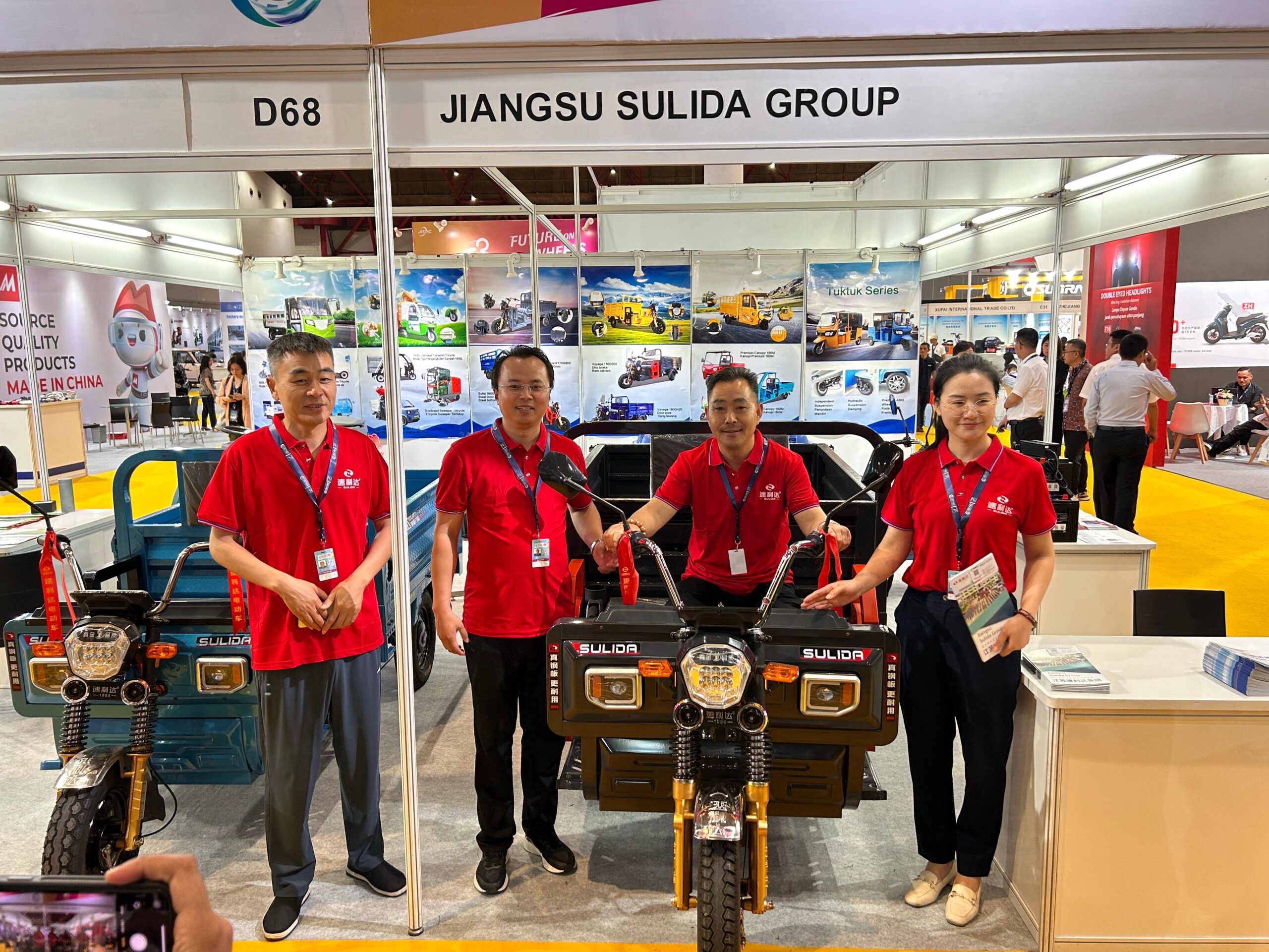 Mulai dari Sinski, Huaihai, Lusunny, Sulida, Sunra, Zhongxing, DUBBS, Dharma Polimetal yang berasal dari Negeri Tirai Bambu alias China menawarkan beragam produk dari roda dua hingga roda tiga dan becak listrik.