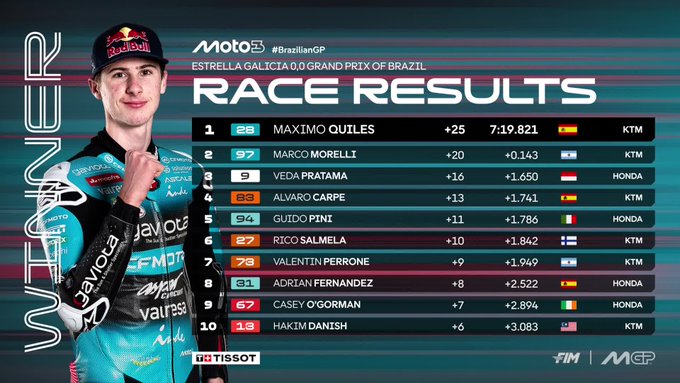 Hasil Balap Moto3 Brasil 2026 (22/3):