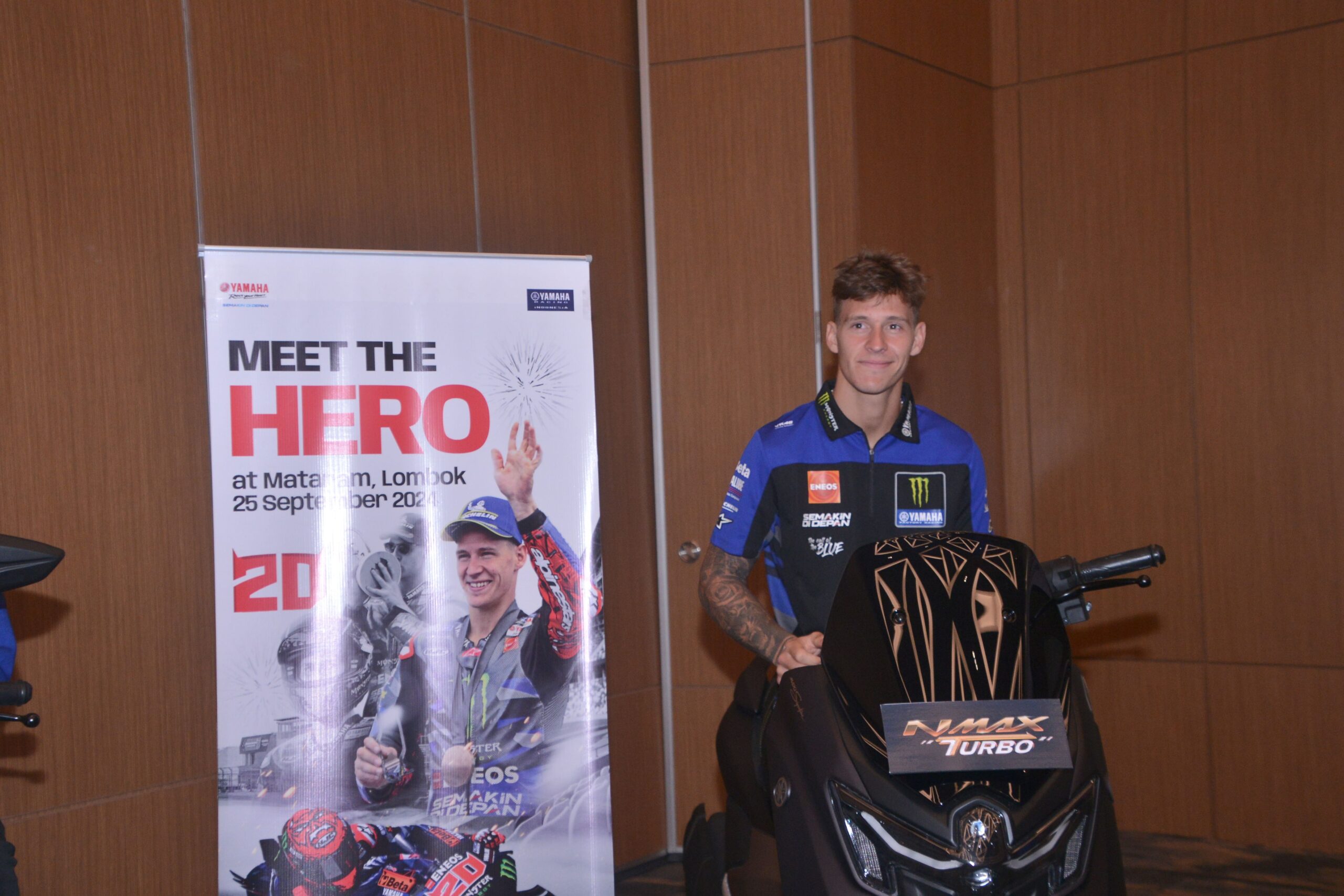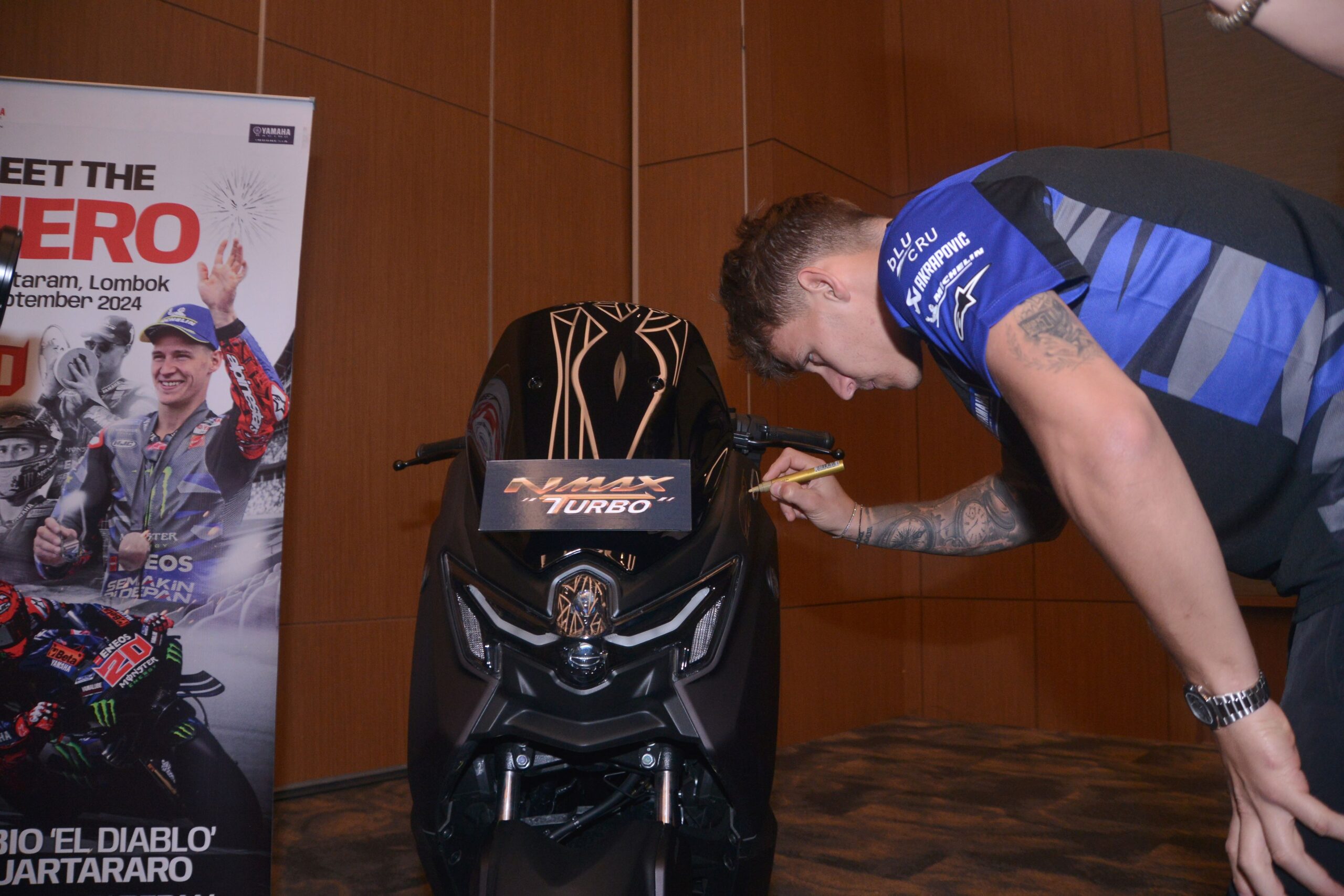 Selain bertemu para fans di Lombok, Quartararo juga melihat secara langsung Yamaha NMAX Turbo dan menandatangani salah satu unit Yamaha NMAX Turbo.